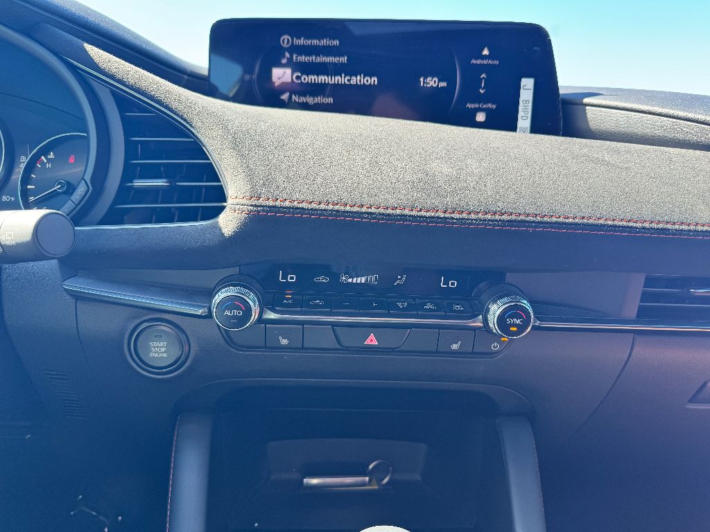 It offers Automatic Climate Control for personalized comfort. Lane Keep Assist in this small car helps maintain safe driving by gently steering to stay within the lane. The vehicle's blind spot monitor enhances safety. Our dealership has already run the CARFAX report and it is clean. A clean CARFAX is a great asset for resale value in the future. The vehicle features a hands-free Bluetooth phone system. Never get into a cold vehicle again with the remote start feature on the vehicle. Protect this small car from unwanted accidents with a cutting edge backup camera system. The vehicle is a manufacturer certified pre-owned vehicle. Apple CarPlay: Seamless smartphone integration for the Mazda Mazda3 - stay connected and entertained on the go! The leather seats in this small car are a must for buyers looking for comfort, durability, and style. This unit offers Android Auto for seamless smartphone integration. Maintaining a stable interior temperature in it is easy with the climate control system.